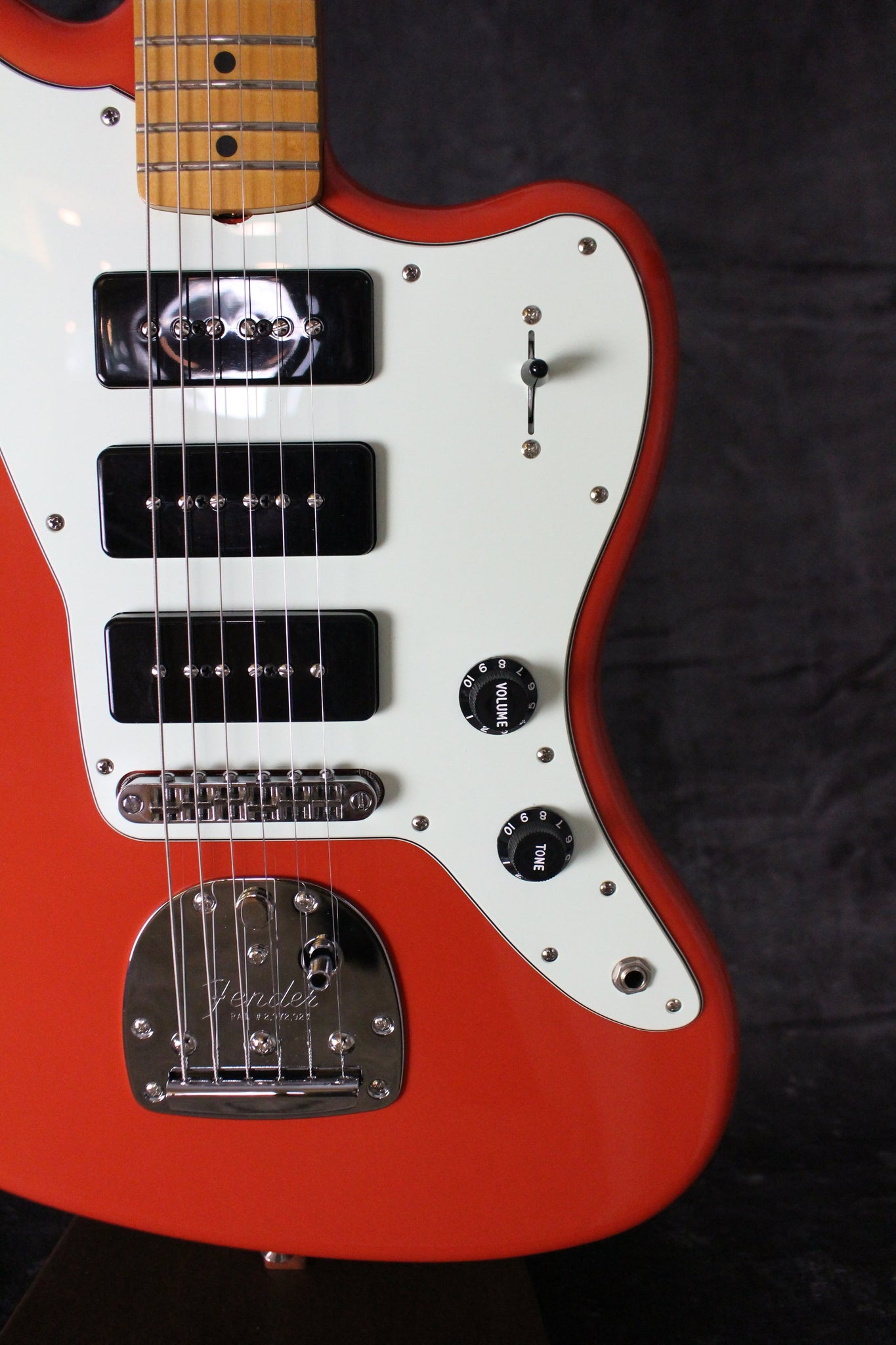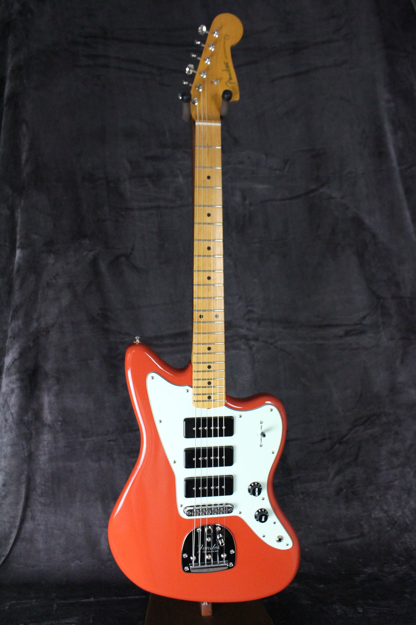 Pickups/Hardware: 3 P-90 pickups, Fender “Kluson” style tuning keys, Tune-O-Matic bridge with Vibrato, Black knobs, Melamine nut.