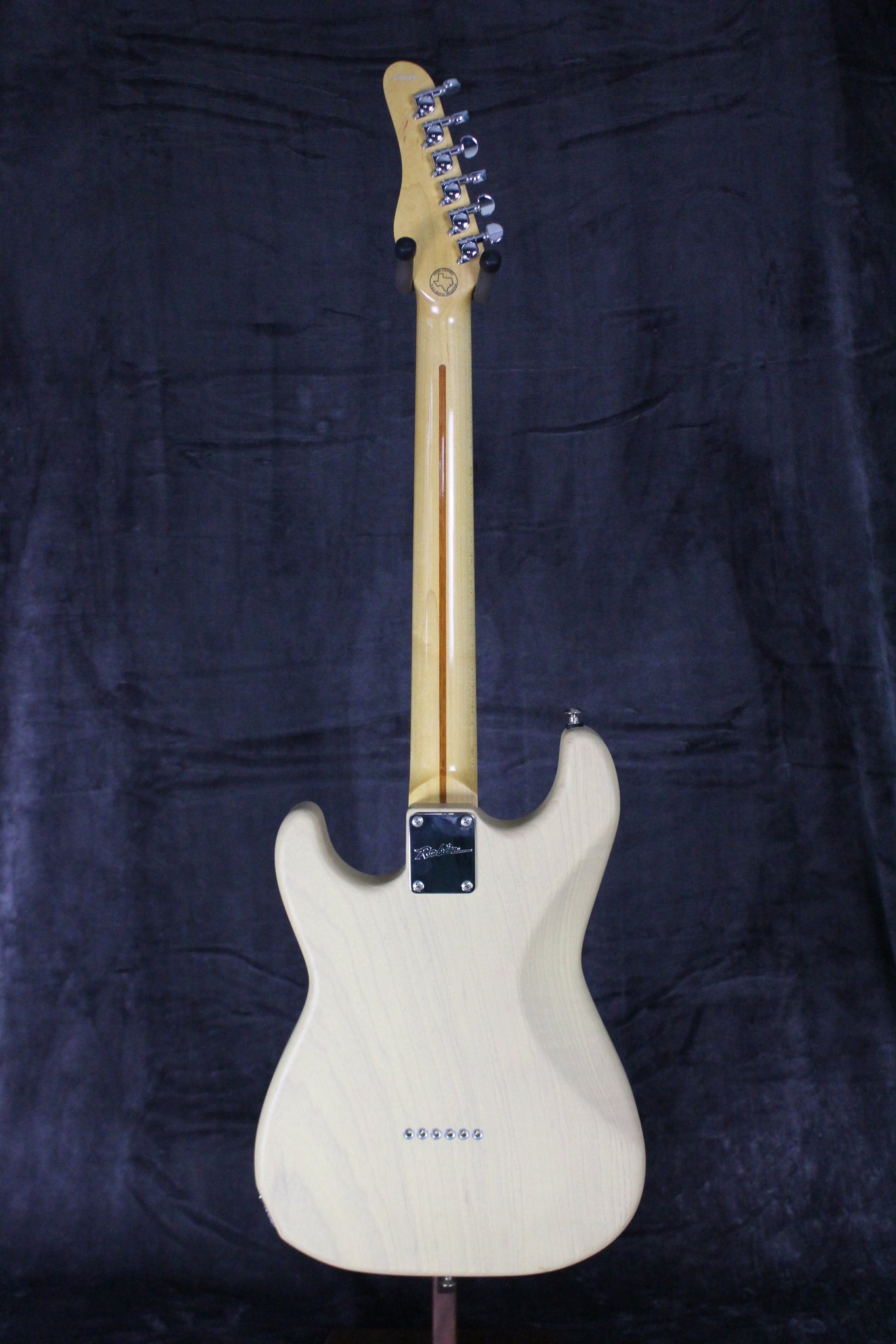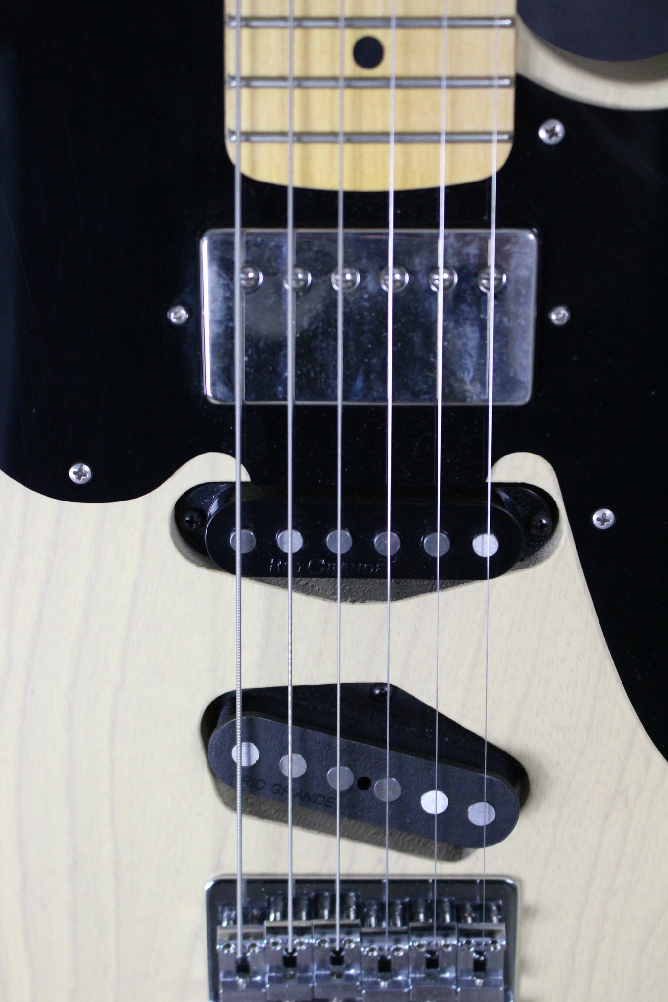 Pickups/Hardware: Bridge: Rio Grande Muy Grande, Middle: Rio Grande Halfbreed, Neck: Rio Grande Genuine Texas Humbucker, mini Grover tuners, fixed bridge.