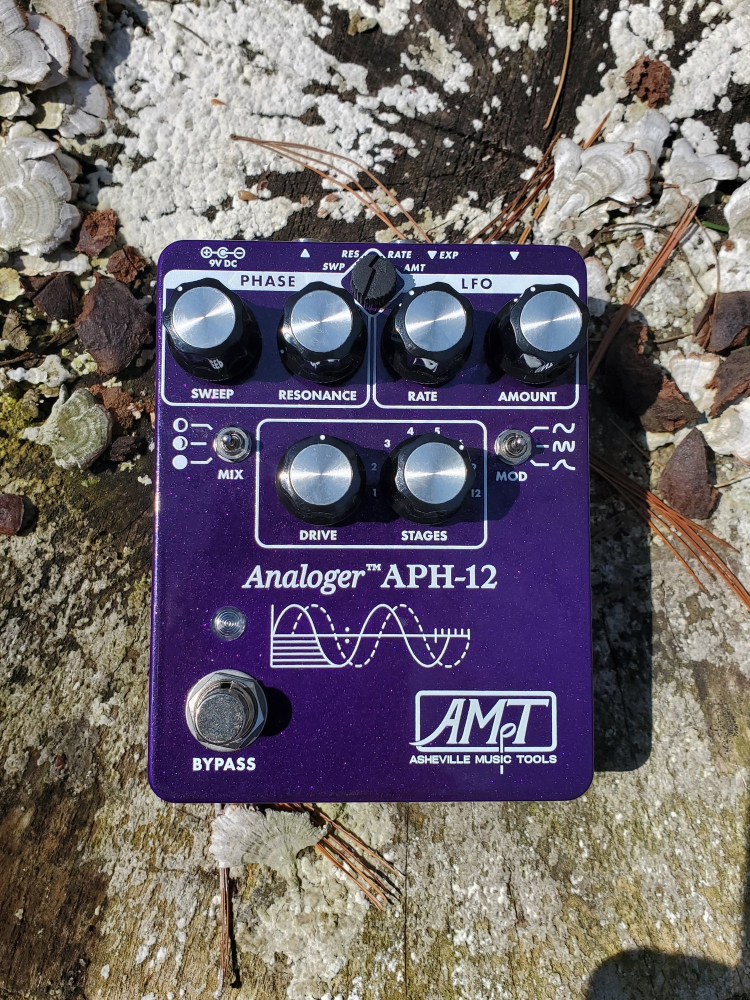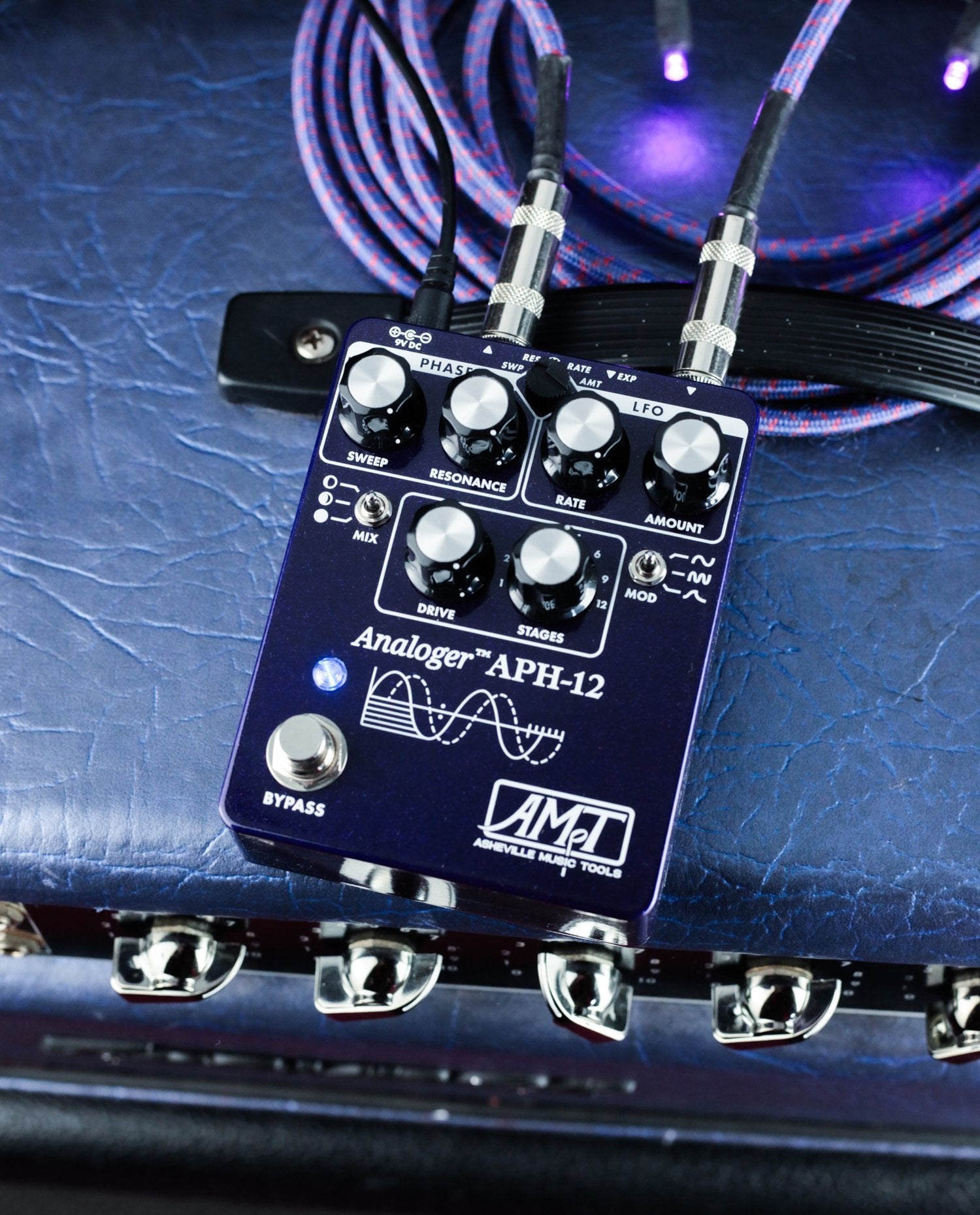 The Analoger Series APH-12 is a 100% analog 12-stage phase shifter with deep functionality in a compact footprint. It delivers not only classic phaser tones, but many features and sounds not normally associated with traditional phasers. With a selectable number of all-pass stages from 1 to 12, and our signature control voltage processing, multiple flavors of modulation sit at your fingertips. The APH-12 delivers classic or extreme phase shifting, faux Leslie warble, vibrato and tremolo, vocal envelope followed filter funkiness, and striking multi-peak EQing. Designed by Hawker, this pedal continues the legacy of high stage count phasers and adds some surprises and special features to install Purple pHaze all in your brain.