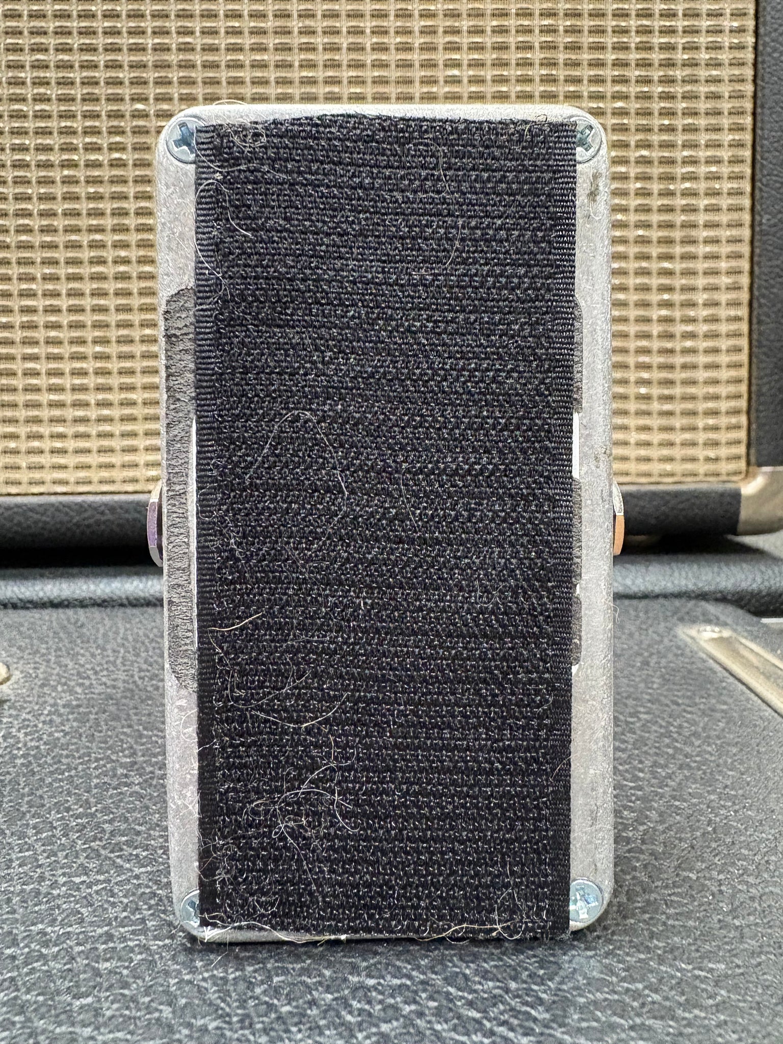 This pedal has been tested and is fully working and sounds great. No box or power supply. The footswitch was replaced with a Sanwa-style arcade button, by Alchemy Audio, and the volume knob has been replaced with a chicken head knob. Only items pictured are included (cables, cords, etc). The pedal will be professionally packaged.