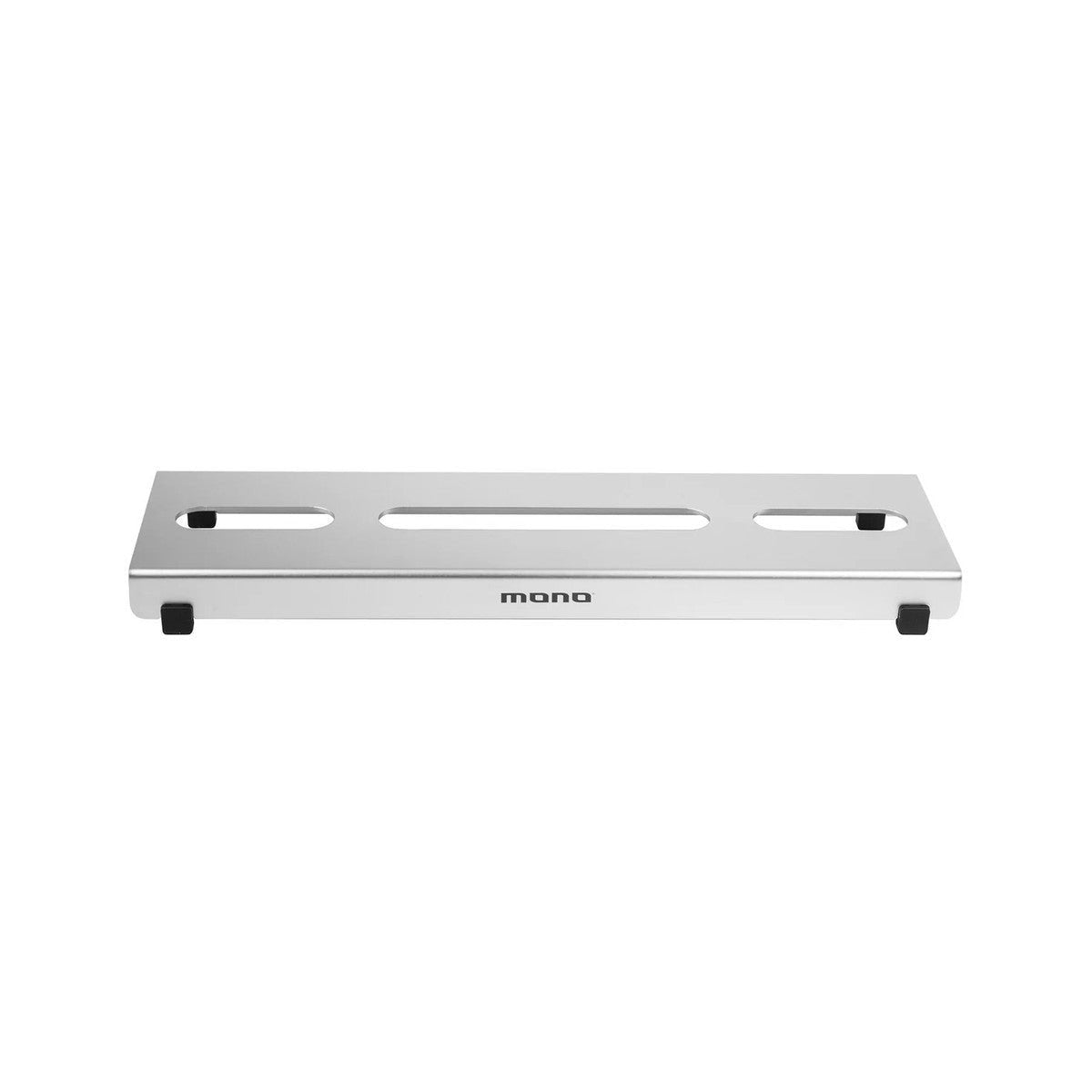 Each MONO pedalboard is cut from a single piece of anodized aluminum, giving it a tough but incredibly light form factor that feels streamlined and elegant. The cut-outs on the face of each board accommodate every possible cable-wrapping configuration, allowing for the maximum variety of pedal layouts. On the bottom, rubber feet add stability and shock absorption, while the flat profile is designed for easy reach on a smaller board.